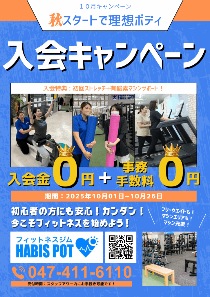 初回ストレッチ&有酸素マシンサポート付き! 10/1〜10/26 まで